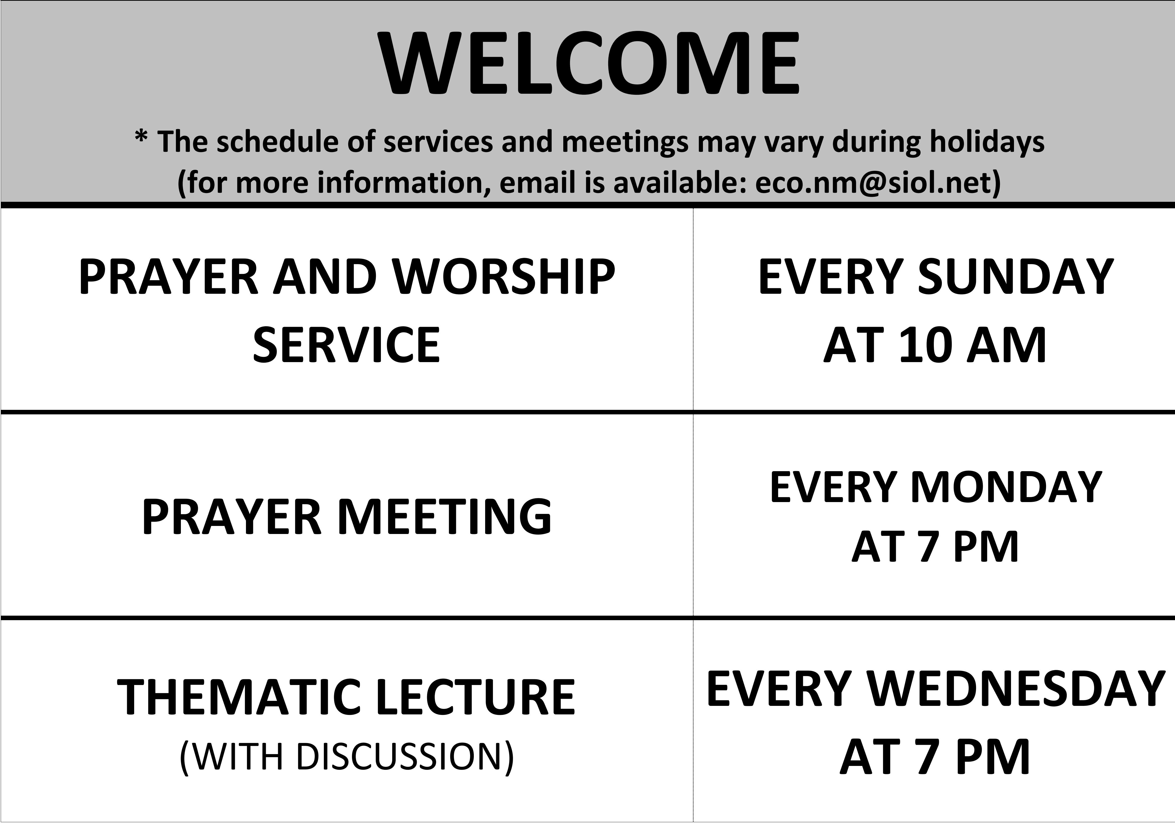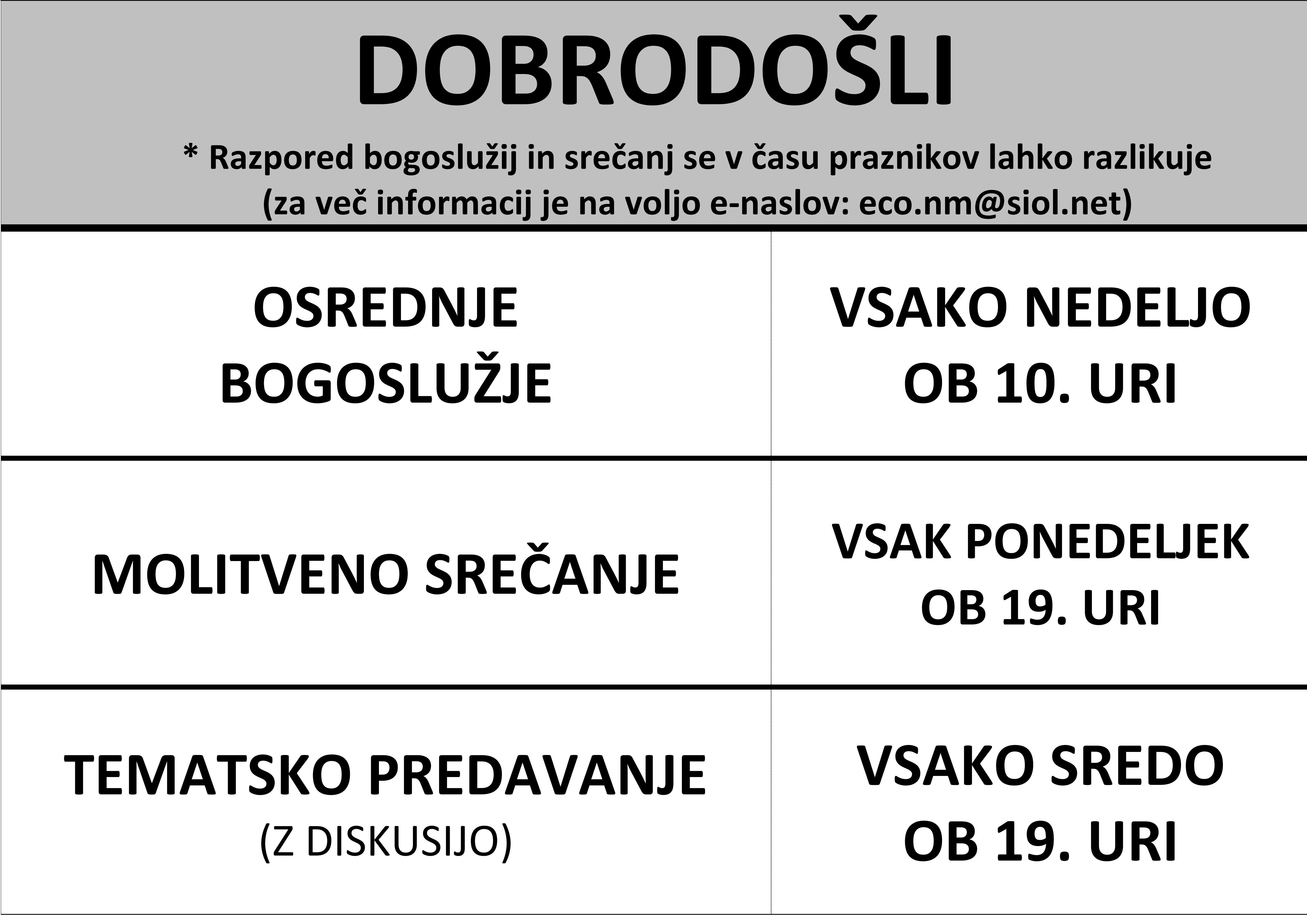 Med nami je veliko možnosti za druženje, prijateljevanje, duhovno rast, izgrajevanje in služenje. Bogoslužja, odprta delovanju Svetega Duha, prežemajo optimizem, veselje odrešenja, strokovno preučevanje Svetega pisma, poglobljene molitve in navdihnjene pesmi čaščenja, pridige pa so povezane s potrebami življenjske stvarnosti.